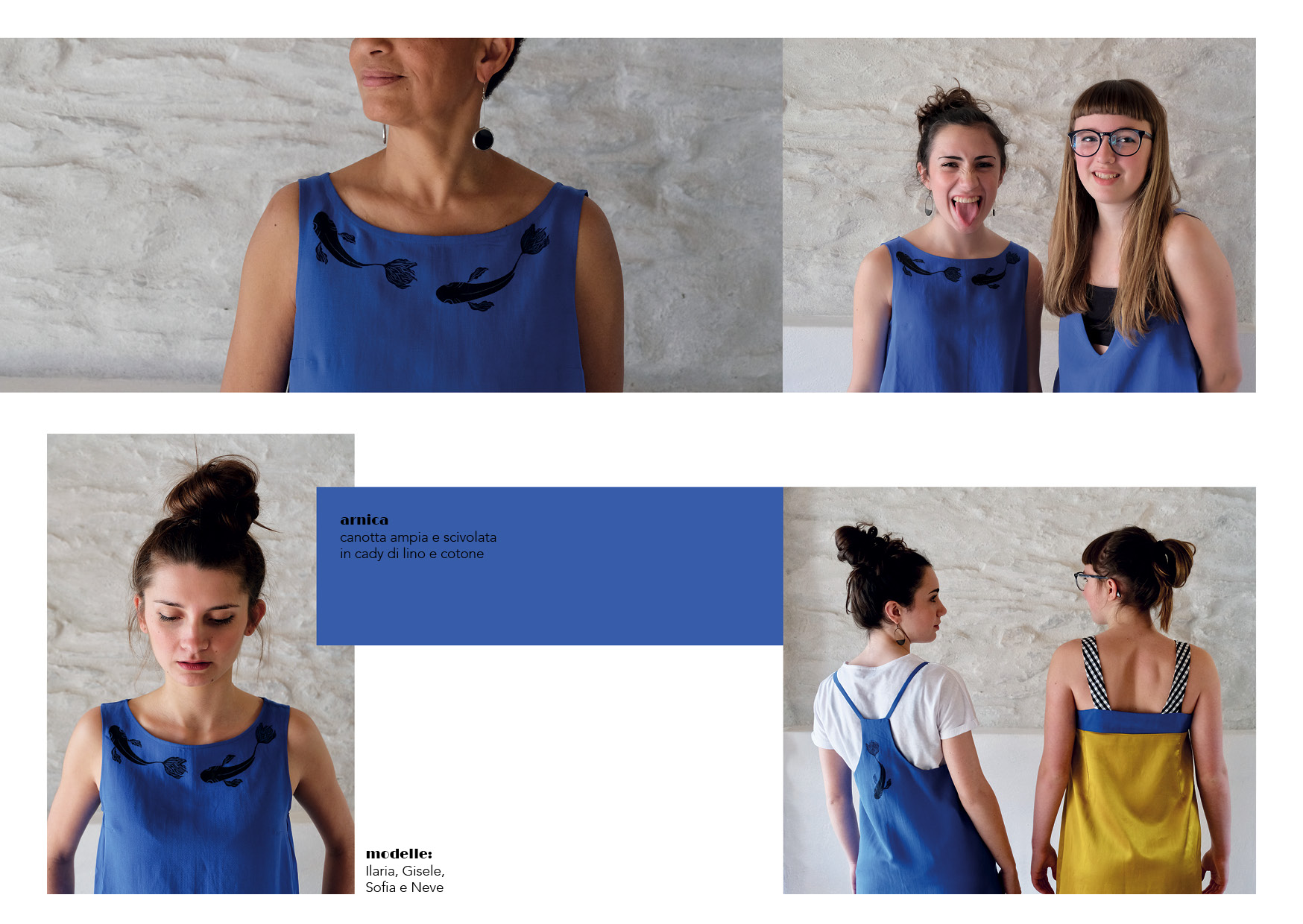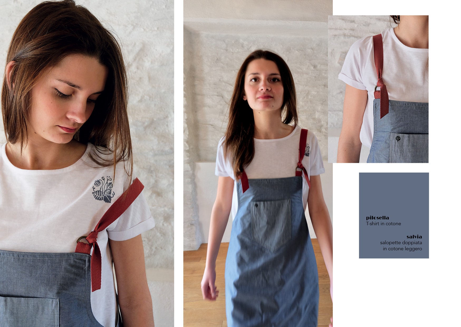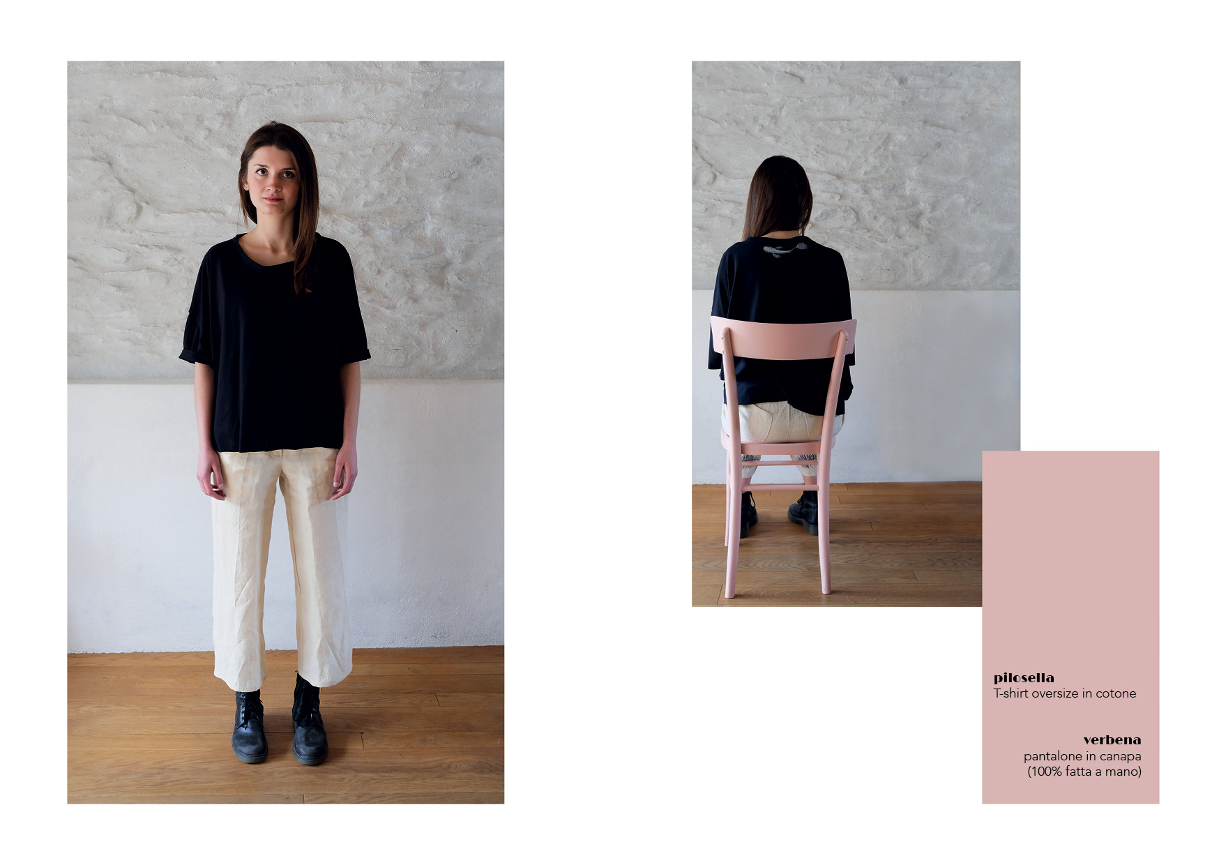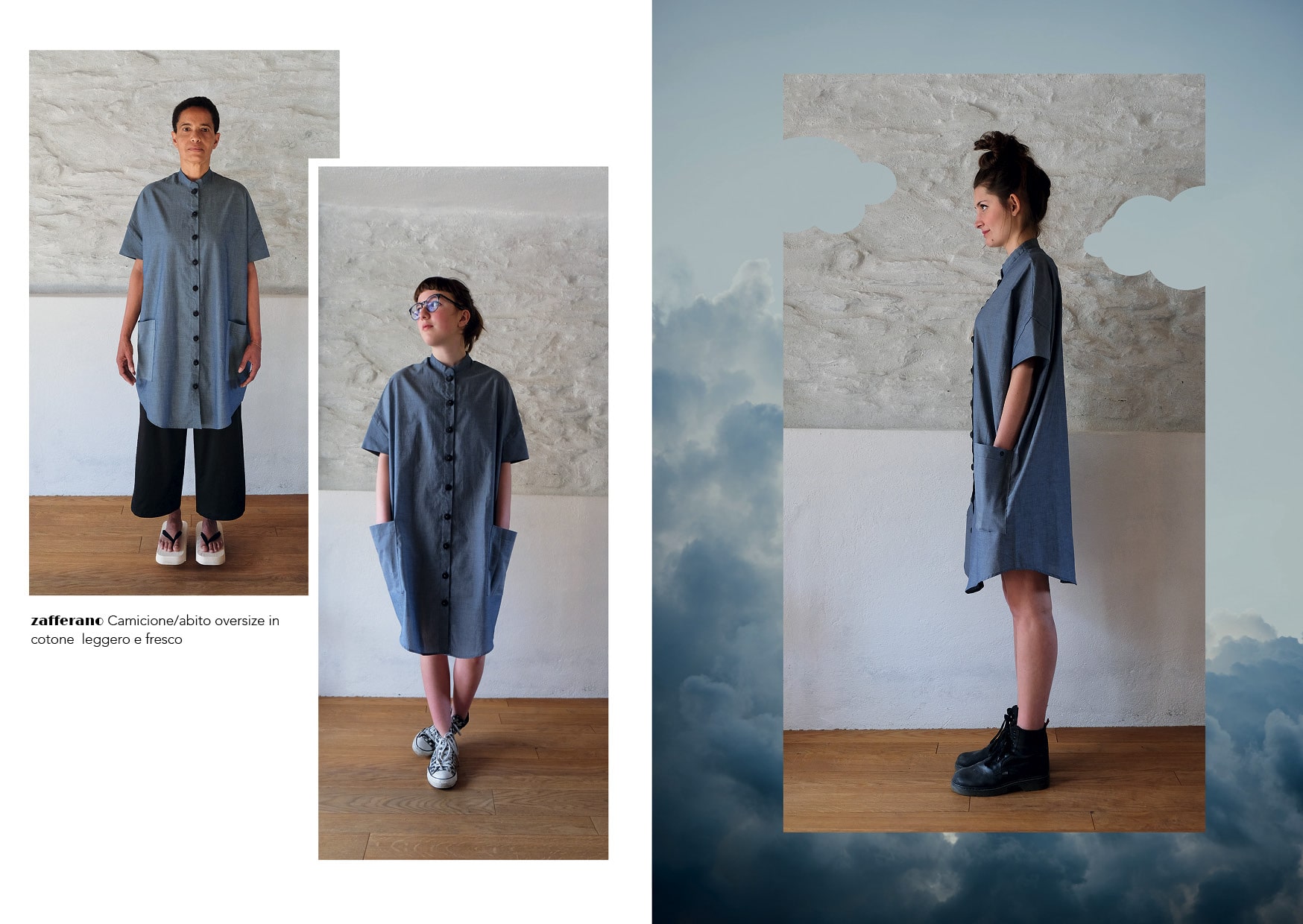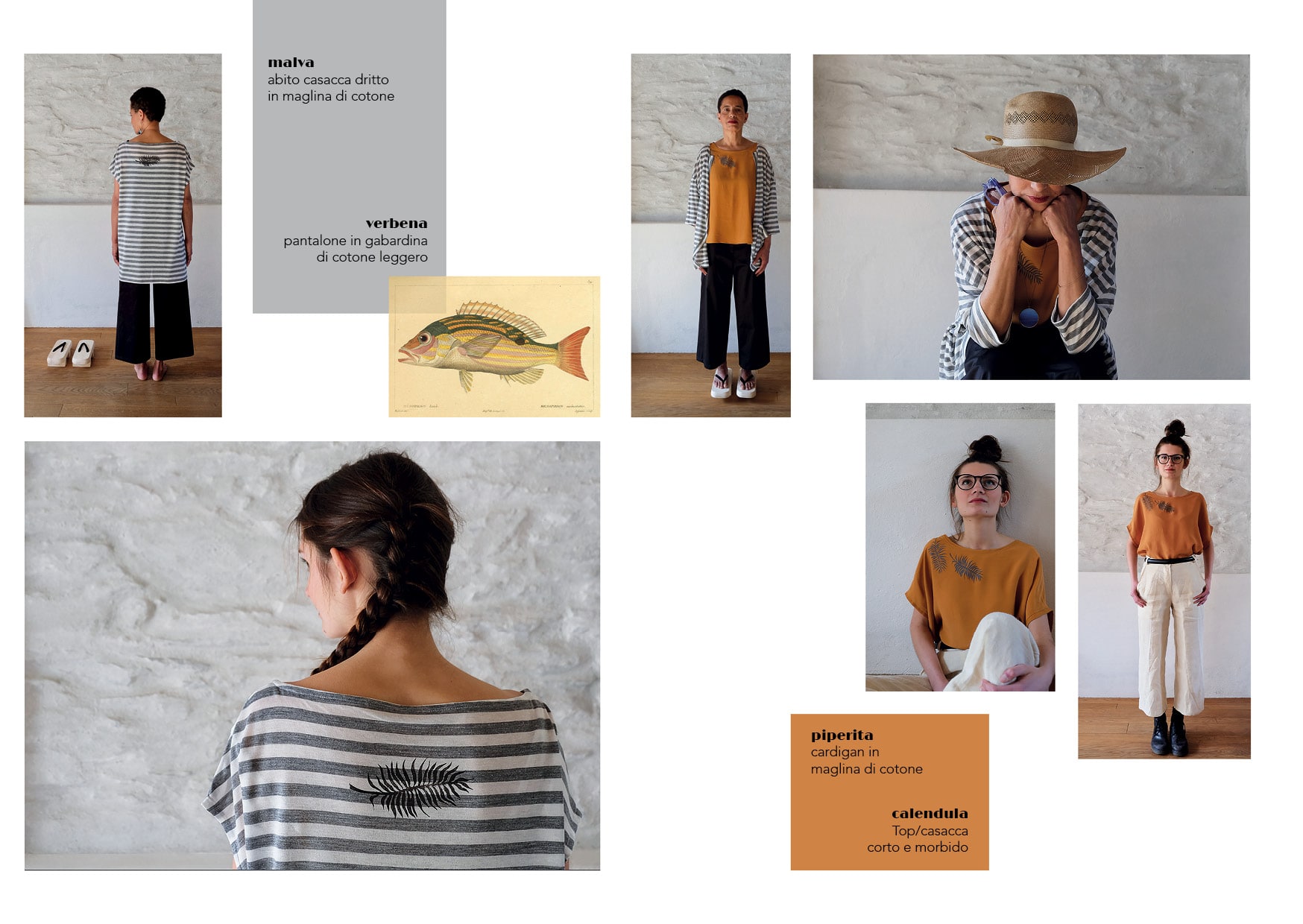 Sono confezionati in tessuti prevalentemente naturali, ed ogni capo è prodotto in piccole quantità, curandone i dettagli artistici e artigianali.