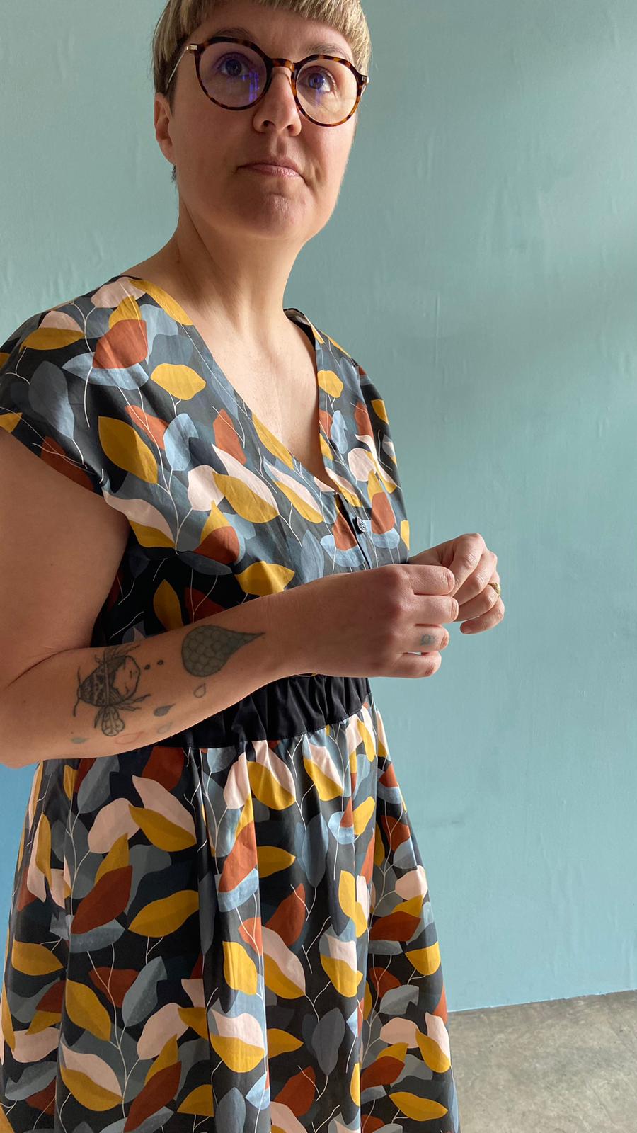 L’abbottonatura è fissata in cucitura, i bottoni, disegnati da noi e stampati in PLA 3D, sono un elemento decorativo.